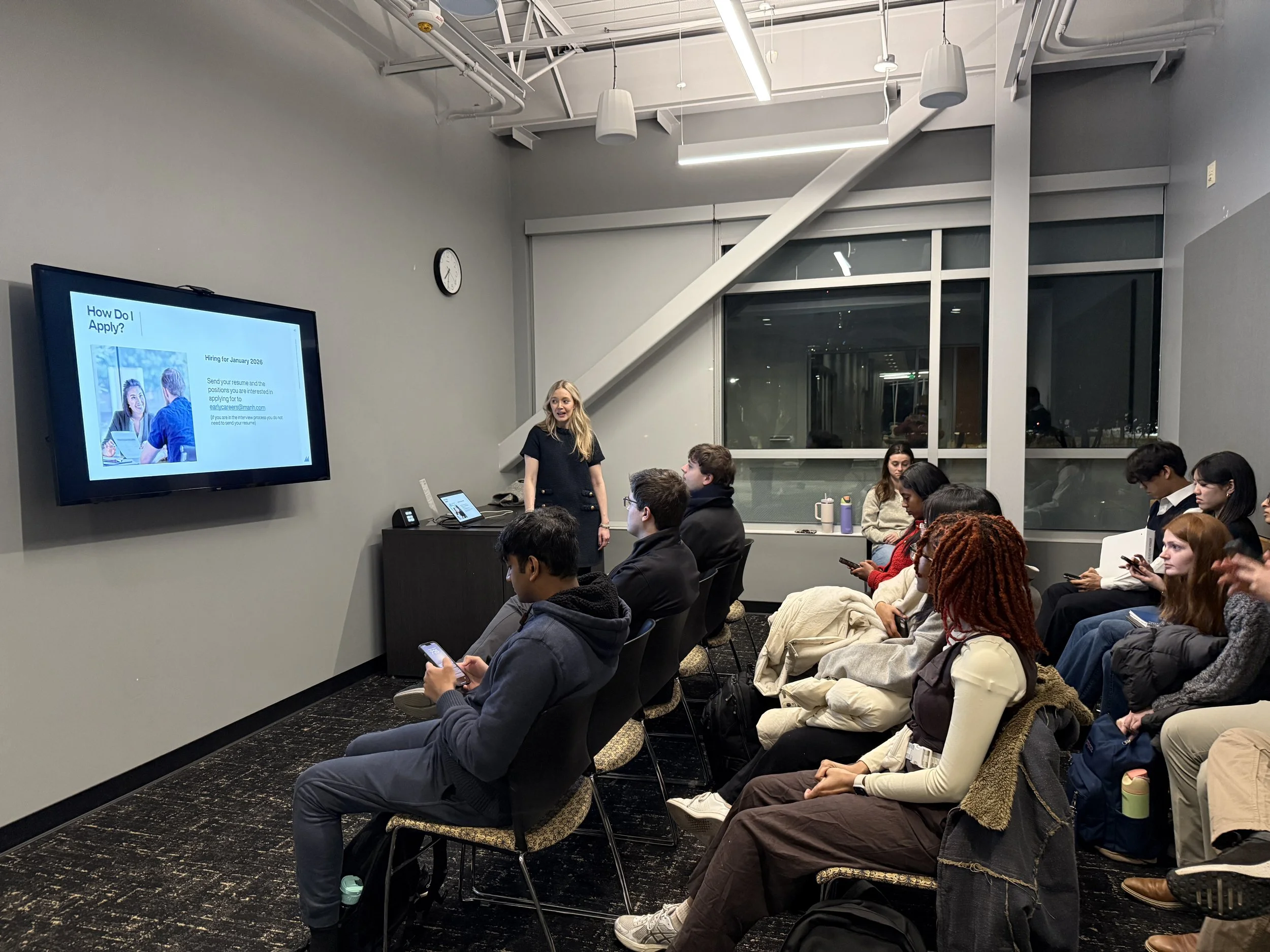 We typically have a 30-60 minute information session followed by time for networking. During this networking time, we can either do breakout sessions (grouped by roles students are interested in, majors, year, etc) or we can have a general Q&A where students can learn from each other’s questions.